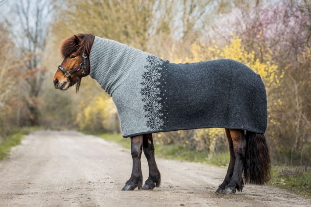 Ás-dekkenet er laget av førsteklasses islandsk saueull og har en utrolig kvalitet. De naturlige fibrene trekker svette opp og bort fra hestens hud, og forhindrer avkjøling, samtidig som det sikrer maksimal varme. Enten du har å gjøre med kaldt og vått vær eller bare ønsker å gi hesten din et ekstra lag med komfort, er Ás-dekkenet med polohals en riktig investering. Skjem bort hesten din med det aller beste innen islandsk ull og tradisjonell design!