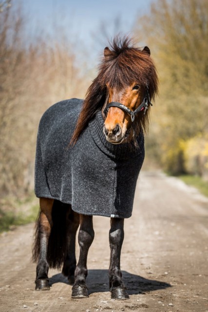 Ás-dekkenet er laget av førsteklasses islandsk saueull og har en utrolig kvalitet. De naturlige fibrene trekker svette opp og bort fra hestens hud, og forhindrer avkjøling, samtidig som det sikrer maksimal varme. Enten du har å gjøre med kaldt og vått vær eller bare ønsker å gi hesten din et ekstra lag med komfort, er Ás-dekkenet med polohals en riktig investering. Skjem bort hesten din med det aller beste innen islandsk ull!