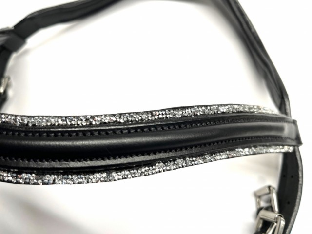 Hodelaget har wave-formet, bred pannereim, og både pannereim og ergonomisk nesereim er polstret. Nesereimen har også polstring i bakkant ved hakepartiet. Nakkereimen er ergonomisk utformet. Pannereim og nesereim har sølv glitter i kantene som glitrer vakkert i solen.