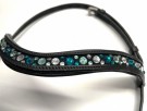 Hodelaget har en pannereim på ca. 34 cm., med mange små og store grønne, hvite og grå sten som danner en wave-form.