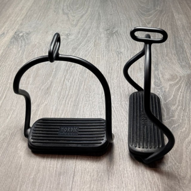 Stigbøyler islandske Nordic Horse svarte Artikkelnr.: 101200 NOK749,00 inkl. mva. Antall Kjøp Ønskeliste Del dette Produktinfo Produktanmeldelser (0) Stigbøyler med dobbel S-form som bidrar til økt sikkerhet. Stigbøylen er i stål med svart matt pulverlakkering og har svart gummiplate med riller under foten. Fra Nordic Horse i Danmark. Innvendig bredde 11,5 cm.Samlet vekt 690 g. Hullene der stigbøyleremmene skal igjennom har følgende mål:3,5 cm. brede1,0 cm. høye Prisen er pr. par. Skriv en produktanmeldelse og del dine erfaringer med dette produktet med andre kunder. Email Navn Din vurdering? 1 star 2 star 3 star 4 star 5 star 6 star Oppgi en tittel for anmeldelsen din Skriv inn produktanmeldelsen i feltet under