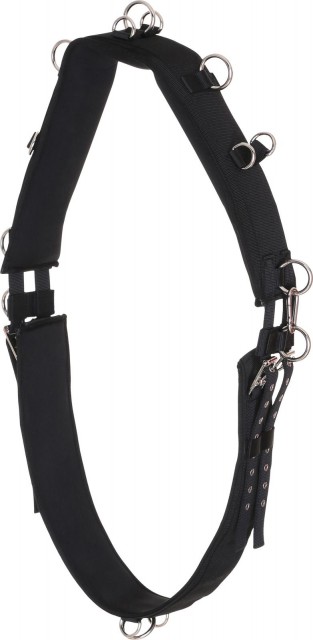 En vel gjennomtenkt longerings- og tømmekjøringsgjord i nylon med flere sett ringer i forskjellige høyder for enkelt å kunne tilpasse innspenningstøyler, tømmer, pessoa, vanlige tøyler etc. Myk og god polstring samt doble spenner.