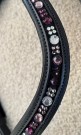Grimen har nydelig dekorasjon med stener i hvitt og lilla nyanser på nesedelen og begge kinnstykker.