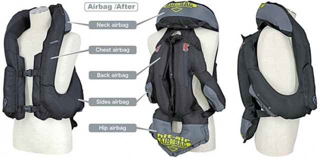 Når airbagene er oppblåst beskytter de all vitale deler av kroppen. Den stiver av nakken ved å fylle opp tomrommet mellom skulderne og underisden av hjelmen, pakker inn brystet, indre organer og ryggraden hele veien ned til halebeinet. Trykket er nå så stort inne i vesten at hele overkroppen er stivet opp.