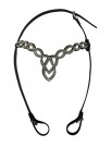 Hodelaget har en pannereim på ca. 34 cm., med mange små hvite stener som danner en bord langs pannen, og ender i en dyp V midt på pannen.