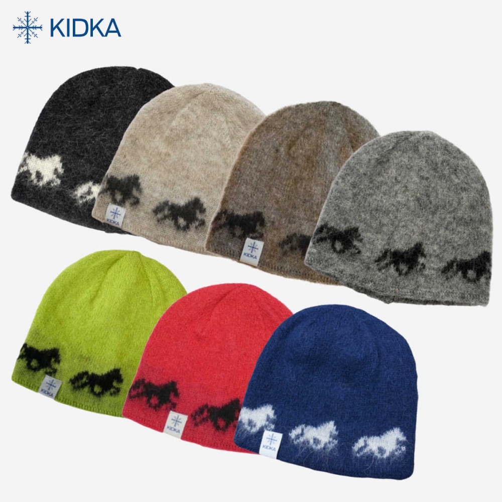 KIDKA-luer av islandsk ull er laget med stor omhu i en «one fits most»-størrelse. Motiver og farger minner om Islands natur. De fleste luer har en linning/kant på innsiden laget av bomull for å forhindre kløe og øke komforten – også disse Fákur-luene. Børstet ull holder hodet ekstra varmt i kaldere og vindfulle temperaturer.